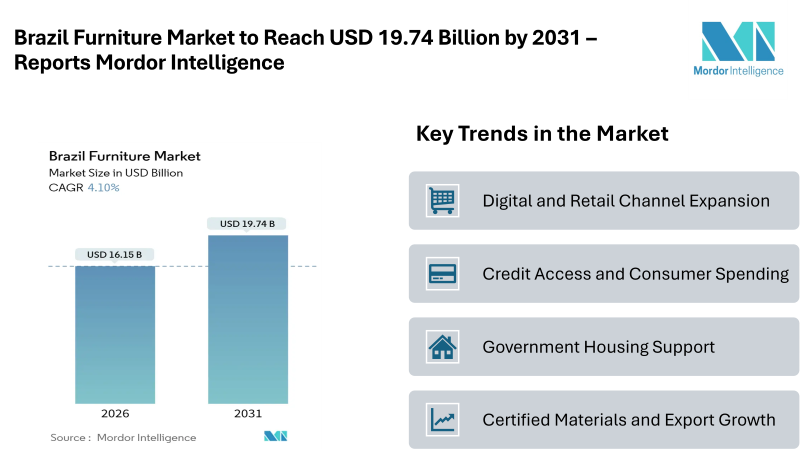 Home Press ReleasesBrazil Furniture Market to Reach USD 19.74 Billion by 2031 – Reports Mordor Intelligence