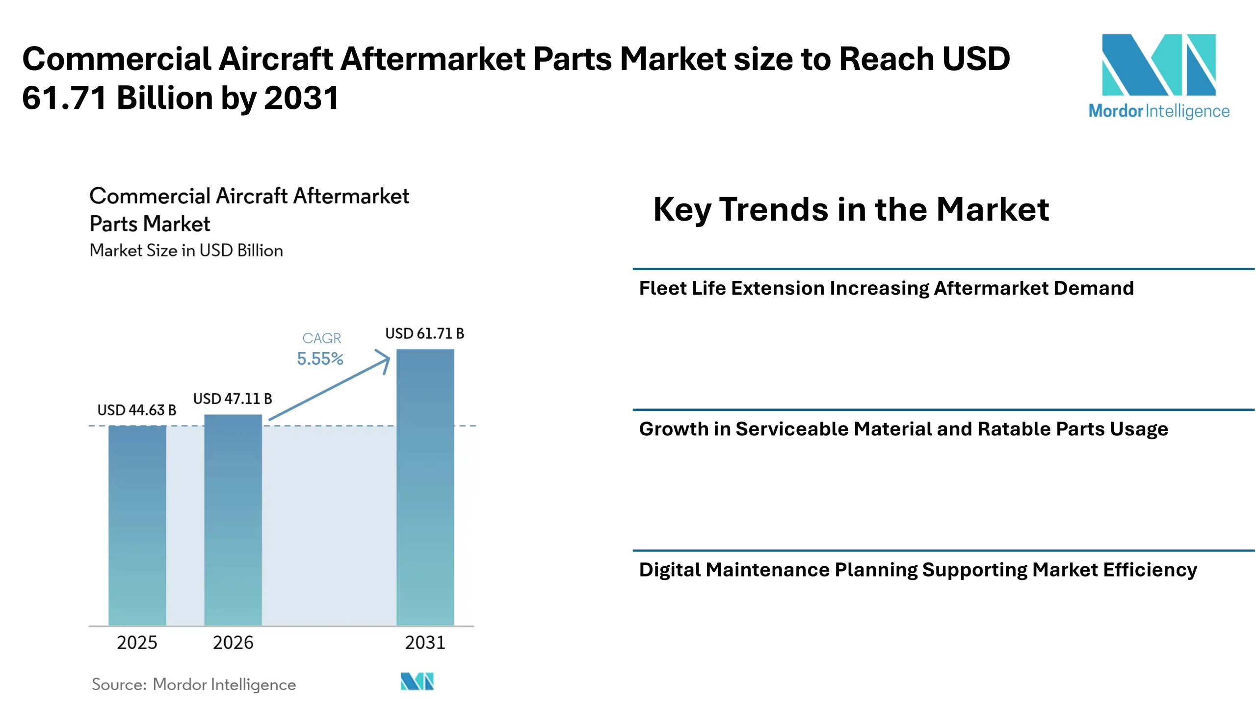 Home Press ReleasesCommercial Aircraft Aftermarket Parts Market size to Reach USD 61.71 Billion by 2031 as Fleet Life Extension and Predictive Maintenance Influence Market Trends – Mordor Intelligence
