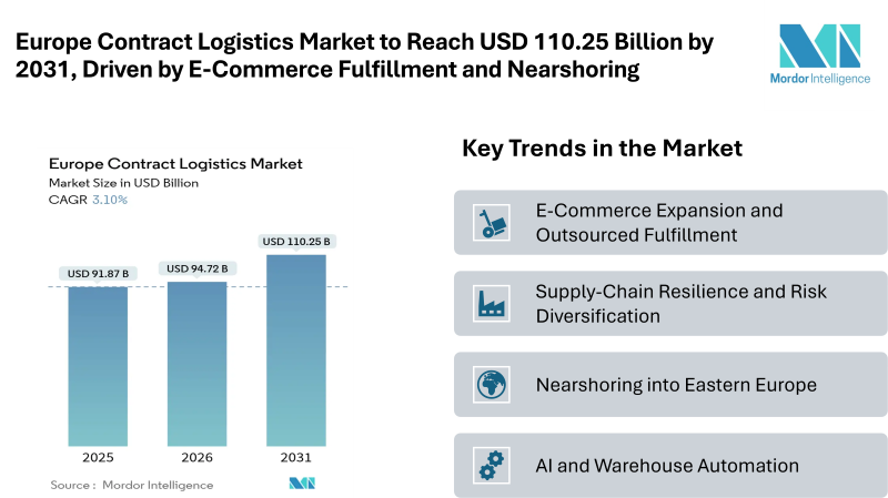 Home Press ReleasesEurope Contract Logistics Market to Reach USD 110.25 Billion by 2031, Driven by E-Commerce Fulfillment and Nearshoring