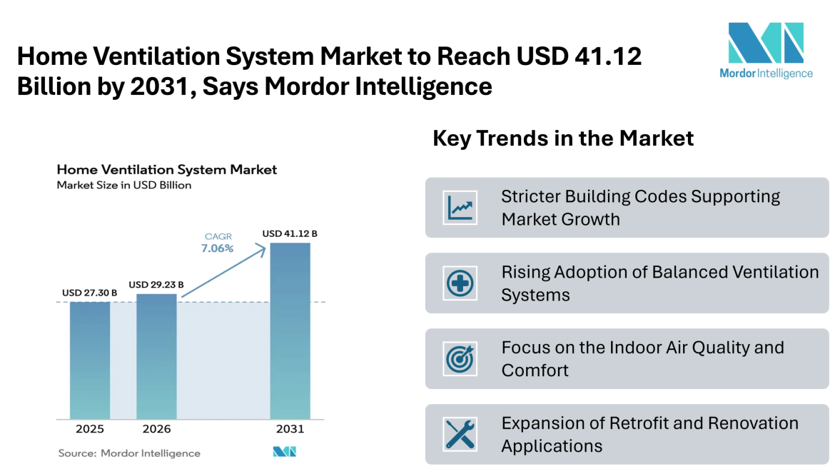 Home Ventilation System Market to Reach USD 41.12 Billion by 2031, Says Mordor Intelligence