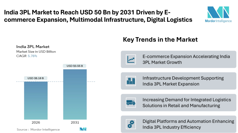 India 3PL Market to Reach USD 50.55 Billion by 2031 Driven by E-commerce Expansion, Multimodal Infrastructure, and Digital Logistics Integration
