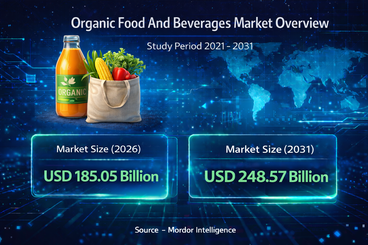 According to the Mordor Intelligence report, the global organic food and beverages market size is estimated to reach USD 185.05 billion by 2026 and is projected to grow to USD 248.57 billion by 2031, registering a CAGR of 6.08% during the forecast period. This consistent expansion reflects a structural shift in global food consumption patterns, where organic certification is increasingly viewed as a benchmark for safety, sustainability, and long-term health.